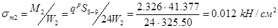 Определение напряжения в сжатой (верхней) зоне верхнего элемента продольного ребра (h2=12.5 см) от местного изгиба на пролете между нагельными пластинами: S8-9 =96.195 см: