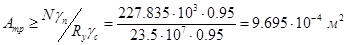 gс = 0.85 – коэффициент неравномерности распределения усилий между отдельными, совместно работающими, гибкими элементами (арматурными стержнями) по[3].
