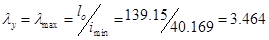 imin =40.169 см – радиус инерции по меньшей стороне элемента. Коэффициент продольного изгиба: