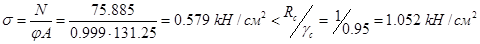 Rс = 1.0 кН/см2 – расчетное сопротивление сжатию [1, табл. 3].