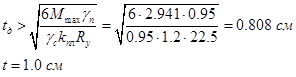 На третьем участке контактные напряжения существенно меньше по величине и, поэтому, не учитываются при расчете пластины на поперечный изгиб. Необходимая толщина опорной пластины: