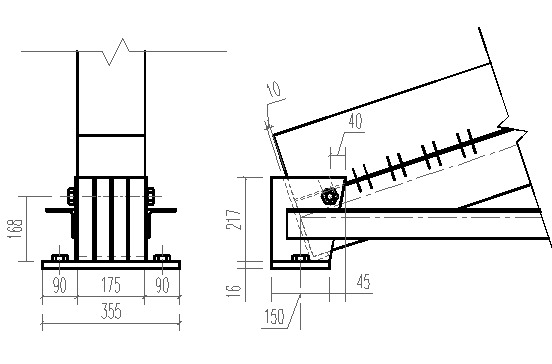 Соединение ребер жесткости с диафрагмой и опорной пластиной при N =341.121 кН:
