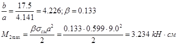 · участок 2: изгибающий момент определяется из расчета консоли с расчетным вылетом: lк = 9.0 см.