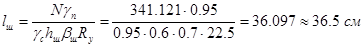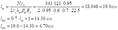 При принятой толщине фасонок и полок проката углового профиля определяется высота сварных швов: hш = 6 мм. Определение длинны сварных швов: соединение уголков нижнего пояса при усилии: N =341.121 кН: