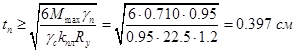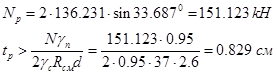 Конструктивно принимаем толщину опорной пластины: tn = 5 мм, толщина дополнительного ребра жесткости: tр = 5 мм.