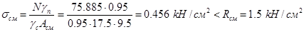 Расчетное усилие: N = 75.885 kН. Определение напряжения смятия (при размерах опорной пластины в плане (17.5 х 9.5):