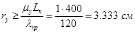 Проверка принятого сечения. Достаточный радиус инерции поперечного сечения: