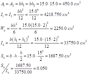 Принимаем высоту сечения колонны: hк = 30 см, т.е. h1 = h2 = 15 см ширину сечения: bк = 15 см. Геометрические параметры поперечного сечения: