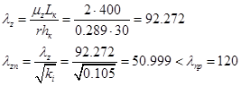 Расчет аналогично из плоскости изгиба, при m у = 1:
