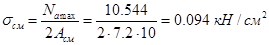 Размеры монтажного столика в плане определяется из условия размещения шайбы под анкерный болт, диаметром 14 мм: а > 4d = 56 мм. Принимаем монтажный столик, размером 80 х 100 мм. Определение напряжения смятия, возникающего по плоскости контакта между шайбами и монтажным столиком по действием анкерных усилий: