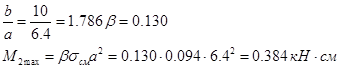 Изгибающий момент для единичной полосы монтажного столика как пластины, подкрепленной по трем сторонам, и соотношением размеров в плане: