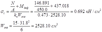 Максимальные напряжения сжатия по обрезу фундамента:
