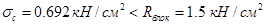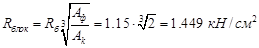 Так как расчетное сопротивление бетона меньше расчетного сопротивления древесины продольному сжатию (смятию) Rc = 1.5 кН/см2, проверка прочности имеет вид: