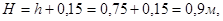 где 0,15м- расстояние от уровня чистого пола до верха фундамента.