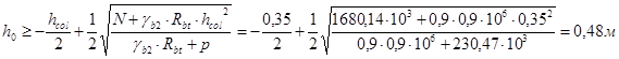 Кроме того, рабочая высота фундамента h0 из условия продавливания по поверхности пирамиды (грани которой наклонены на 450 к горизонту) должна быть не менее: