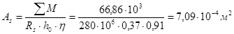 Приращение напряжений в арматуре от действия полной нагрузки:
