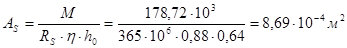 Определяем площадь сечения продольной арматуры: