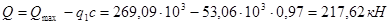 Максимальная поперечная сила (на первой промежуточной опоре слева)