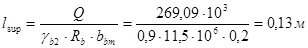 У свободного края при угле наклона сжатой грани g=45° высота консоли
