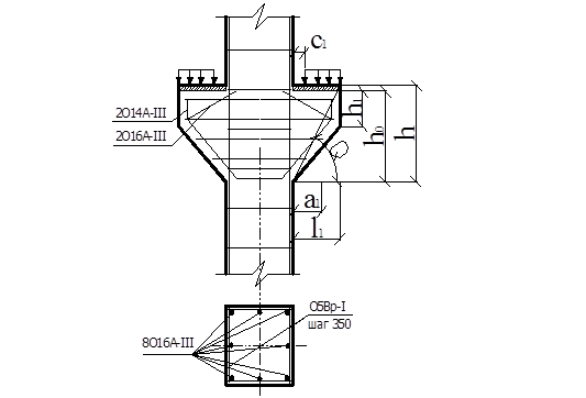 Колонна армируется пространственным каркасом, образованным из плоских сварных каркасов. Диаметр поперечных стержней устанавливаем из условия сварки с продольной арматурой Ø16 мм и принимаем равным Ø 5 мм класса Вр-I с шагом s=0,35 м – по размеру стороны сечения колонны, что не более 20d=20х0,016=0,32м.