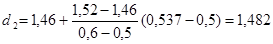 5. Для определения расхода заполнителей устанавливаем коэффициент раздвижки зерен щебня растворной составляющей d интерполяцией: