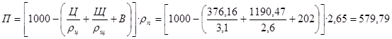 3. Расход песка определяем, исходя из условия недостающего объёма до 1000 л: