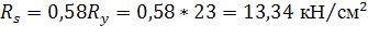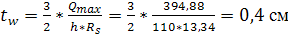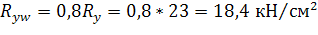 Проверяем принятую толщину стенки из условия работы стенки на касательные напряжения на опоре: