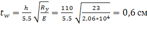 Чтобы не применять продольных ребер жесткости, определяем толщину стенки из условия местной устойчивости пластин:
