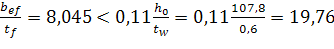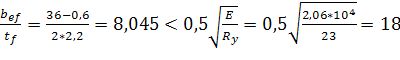 Проверяем принятую ширину (свес) поясов, исходя из их местной устойчивости: