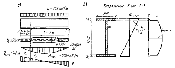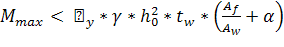 Проверяем несущую способность балки, исходя из устойчивости стенки в области пластических деформаций балки в месте действия максимального момента, где Q и σ=0: