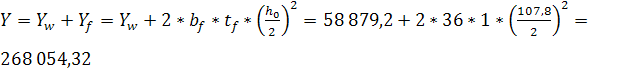 Моментом инерции поясов относительно их собственной оси ввиду его малости пренебрегаем. Отсюда получаем требуемую площадь сечения поясов балки