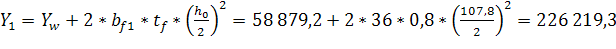 Размеры горизонтальных поясных листов находим исходя из необходимой несущей способности балки. Для этого вычисляем требуемый момент инерции сечения балки: