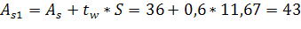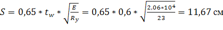 Проверяем опорную стойку балки на устойчивость. Определяем ширину участка стенки, которая включена в работу стенки: