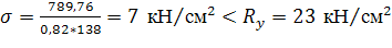Подобранное сечение удовлетворяет требованиям общей устойчивости.