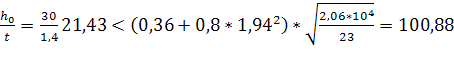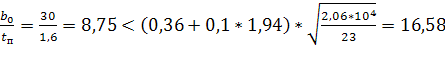 Ширина выступающей части ребра из условий его местной устойчивости не должна первышать