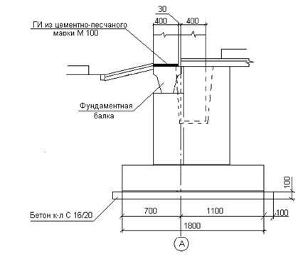 Фундаментные балки. Всего запроектирован 1 типоразмер фундаментных балок. Балки укладывают на сборные опоры, размерами 600–1240. Серия I.42 5- I вып. I. Горизонтальная изоляция выполняется из цементно-песчаного раствора марки М 100.