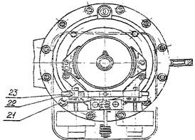 Оттягивание колодок тормоза на период работы безопасной рукояткой производится путем подклинивания хвостовой части рычагов тормоза специально встроенными в них поворотными распорками 23 (см. рис.3). По окончании работ, связанных с ручным разворотом поворотной платформы, установленные в рабочее положение для расклиновки, поворотные распорки 23 рычагов тормоза, должны быть немедленно выведены в нейтральное, т.е. нерабочее положение и колодки тормоза наложены на тормозной шкив.