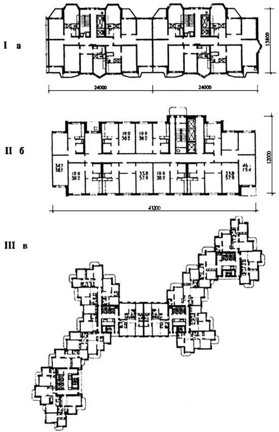 Примеры планировочных решений многосекционных жилых домов различной ориентации