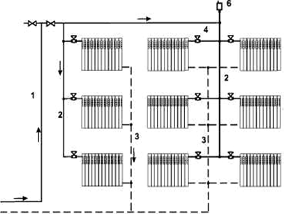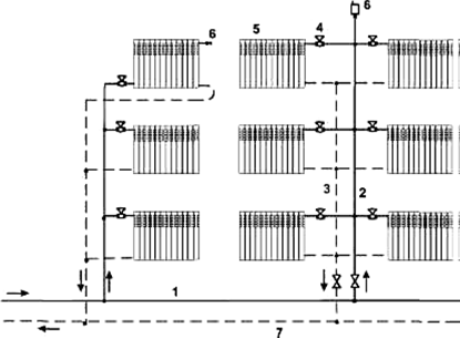 По расположению труб, соединяющих нагревательные приборы, системы делятся на вертикальные, когда приборы присоединяются к вертикальному стояку, и горизонтальные, когда приборы присоединяются к горизонтально расположенным трубопроводам.