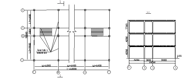 Трехэтажное многопролетное промышленное здание с высотой 1и 2 этажа 4,2м, а 3 - 3,3м. ширина продольных и поперечных пролетов 6,0м. Длина здания 60м, ширина – 18м.