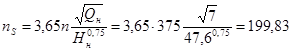 Qн, Нн - расход и напор насоса при максимальном КПД.
