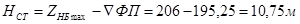 hн=2,75 - превышение оси рабочего колеса насоса над верхом фундаментной плиты;