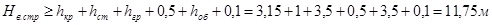 hкр=3,15м - габарит кранового оборудования; hст=1м - высота строповки груза; 0,1 - минимальное расстояние от низа перекрытия до верха балки крана; hгр=3,5м - высота самой крупной транспортируемой детали; 0,5 - минимальный запас высоты от груза до установленного оборудования; hоб=3,5м - высота установленного оборудования.