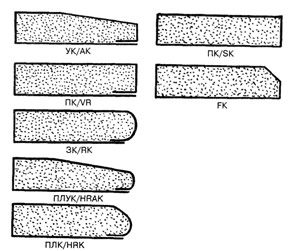 Цифры, указанные в марках, означают толщину в миллиметрах. Гипсокартонные листы также классифицируются в зависимости от типа продольной кромки. В соответствии с этим листы изготавливаются нескольких видов показаны основные типы кромки.