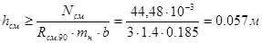 было не менее 0.1Н и не менее 2h с округлением, кратным 50 мм в большую сторону. Принимаем