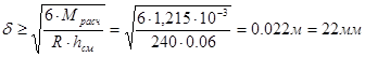 Принимаем планку в соответствии с сортаментом δ = 25 мм