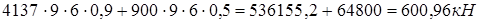 от веса совмещенной кровли: 4137∙24∙6∙0,9 = 536,16кН;