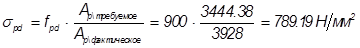 Т. к. определение площади расчетной арматуры было выполнено по методу предельных усилий по прочностной модели, напряжения