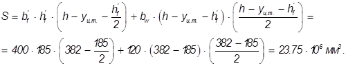 - статический момент части сечения, расположенной выше его центра тяжести относительно центра тяжести;
