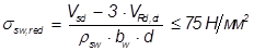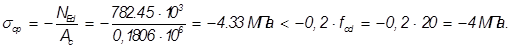 Проверка прочности балки по наклонной полосе между диагональными трещинами при действии главных сжимающих напряжений выполняется из условия 7.85 п.7.2.2.11 СНБ 5.03.01-02